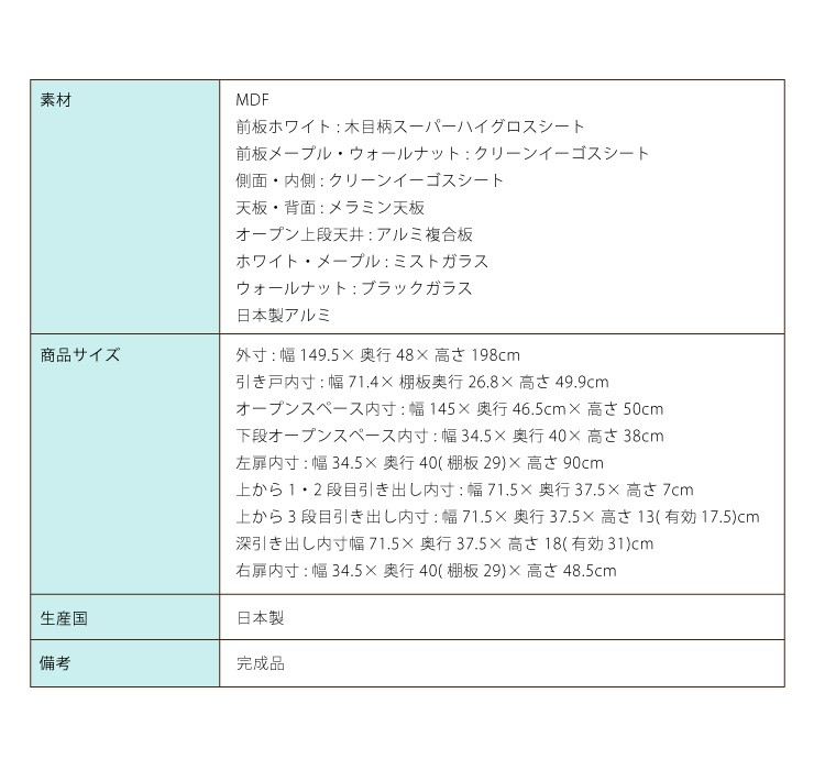 食器棚 幅150cm 高さ198cm 大川家具 国産