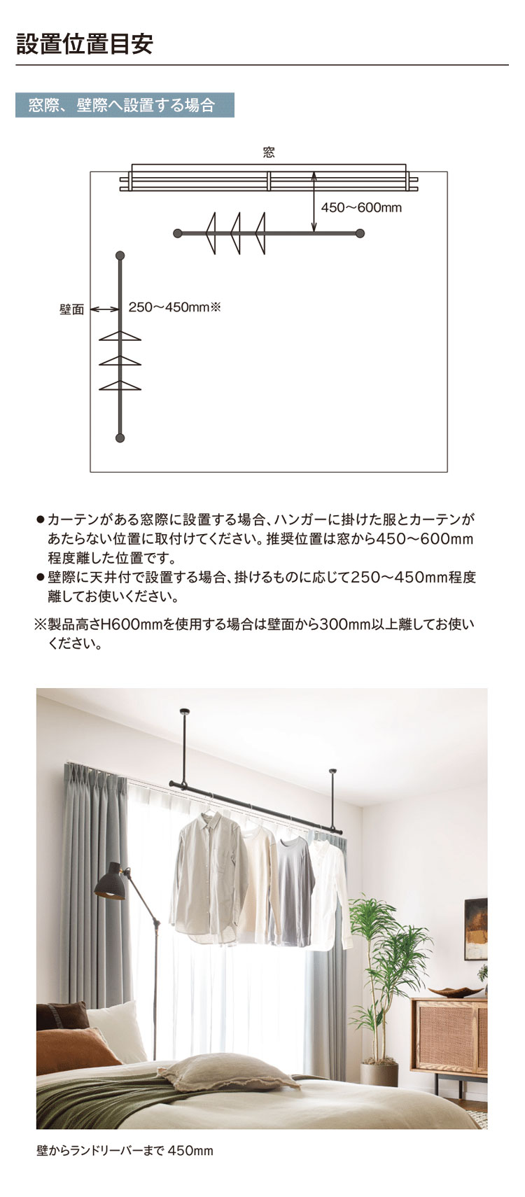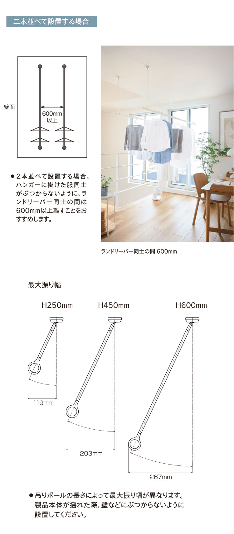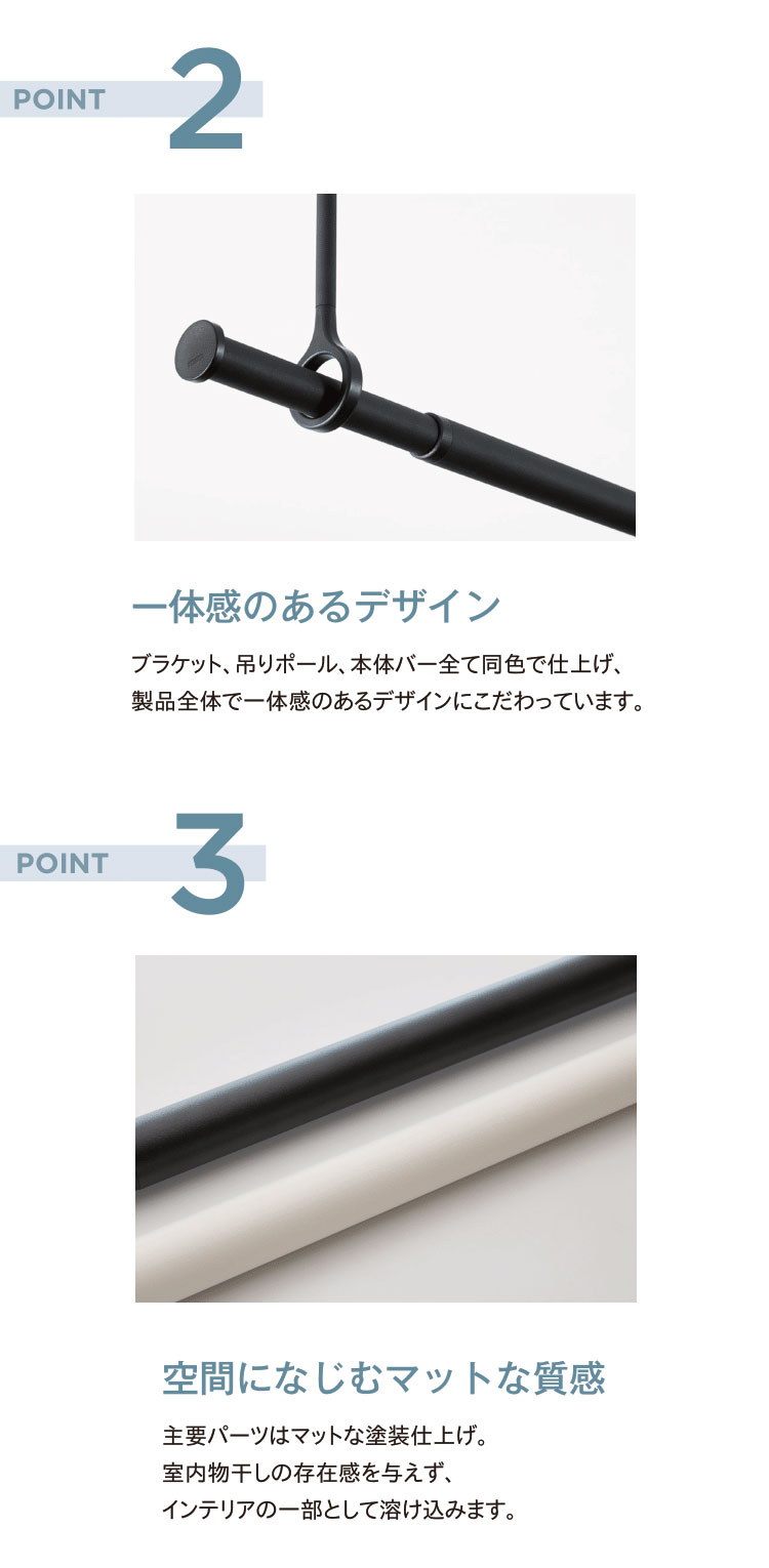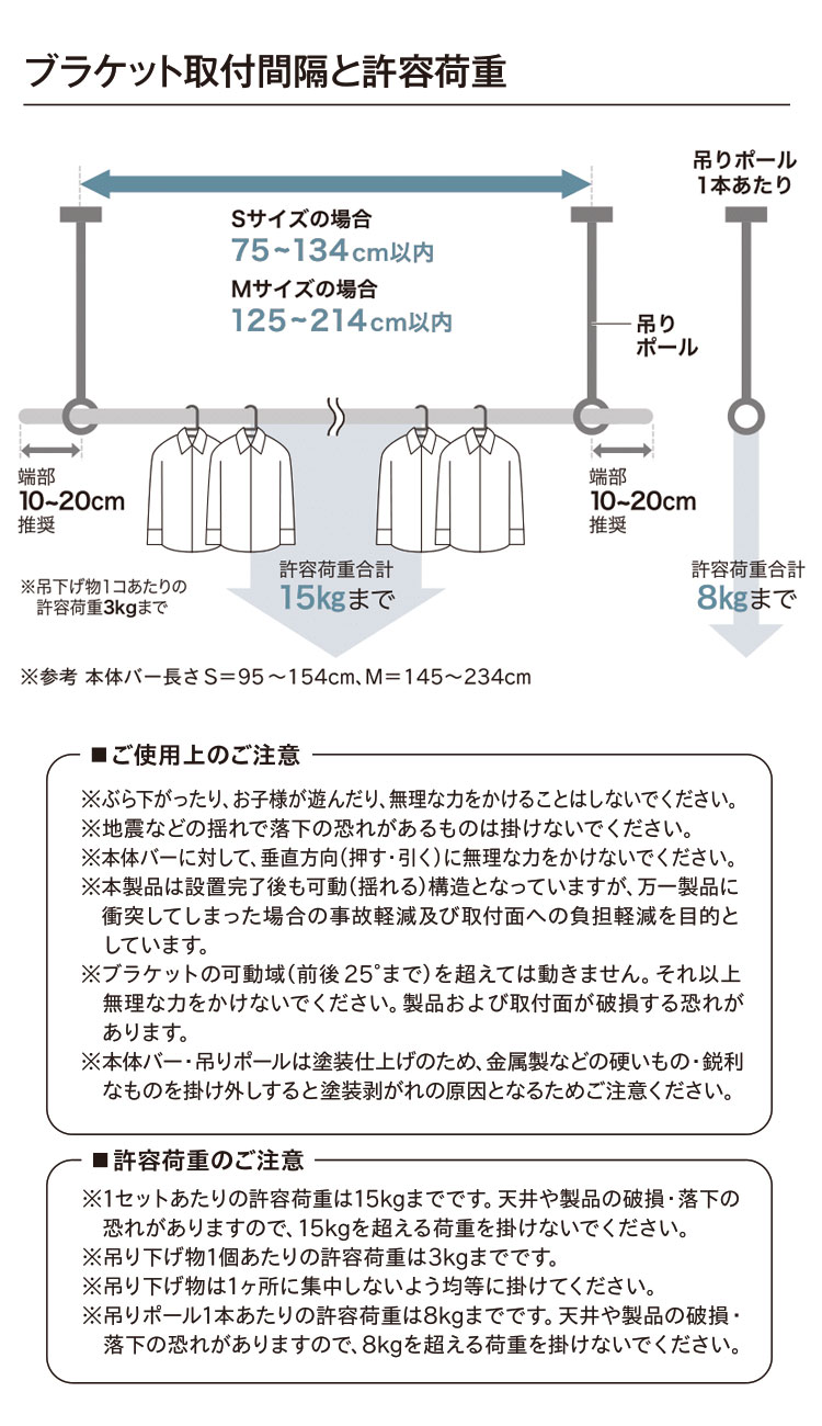 ・許容耐荷重:本体バー15kgまで、吊りポール1本あたり8kgまで