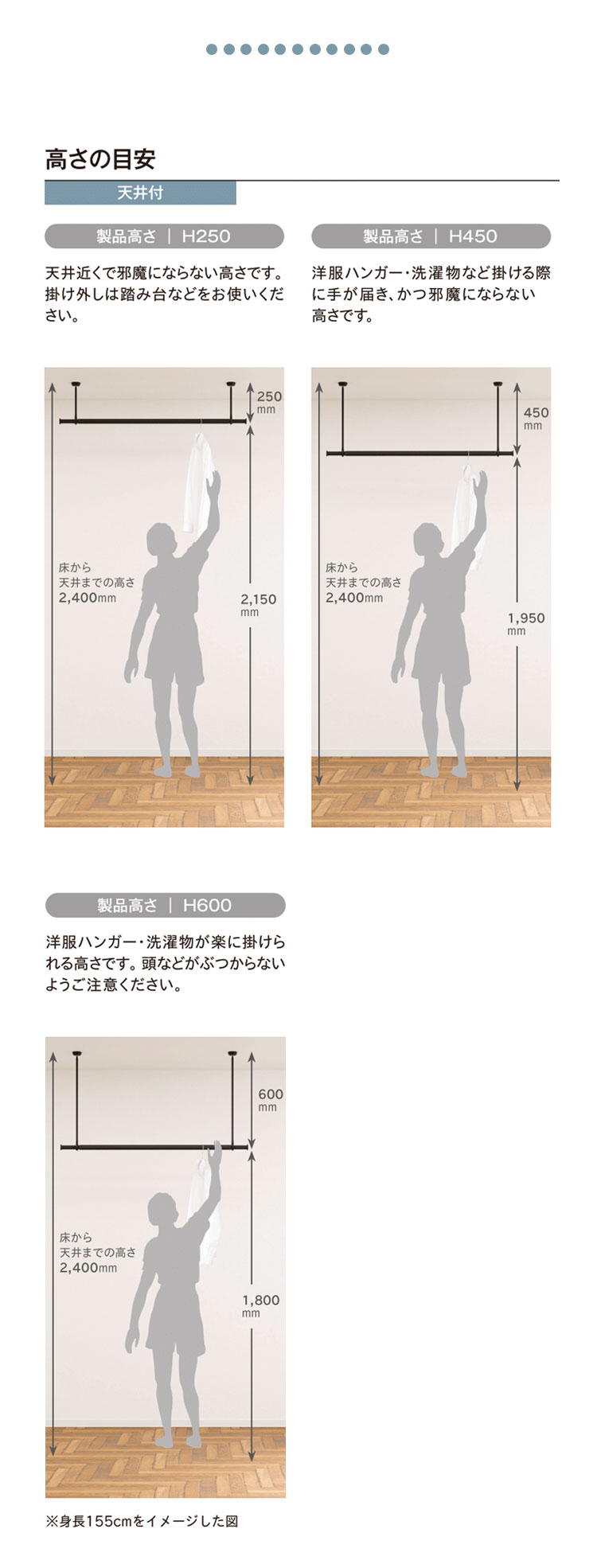 ランドリーバー LB-1 吊りポール2本セット 高さ25cm 45cm 60cm