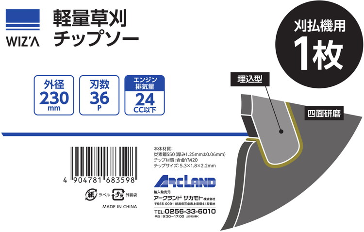 WIZ'A アークランドサカモト 軽量草刈チップソー 230×36P