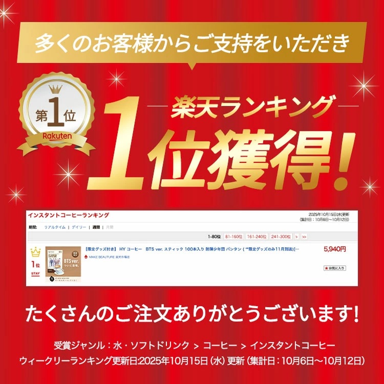 話題のBTSコラボ コーヒー 韓国コーヒー スティック 100本入 HY KOREAN COFFE 防弾少年団(BTS/バンタン)