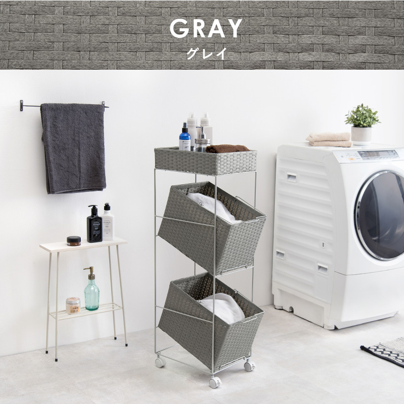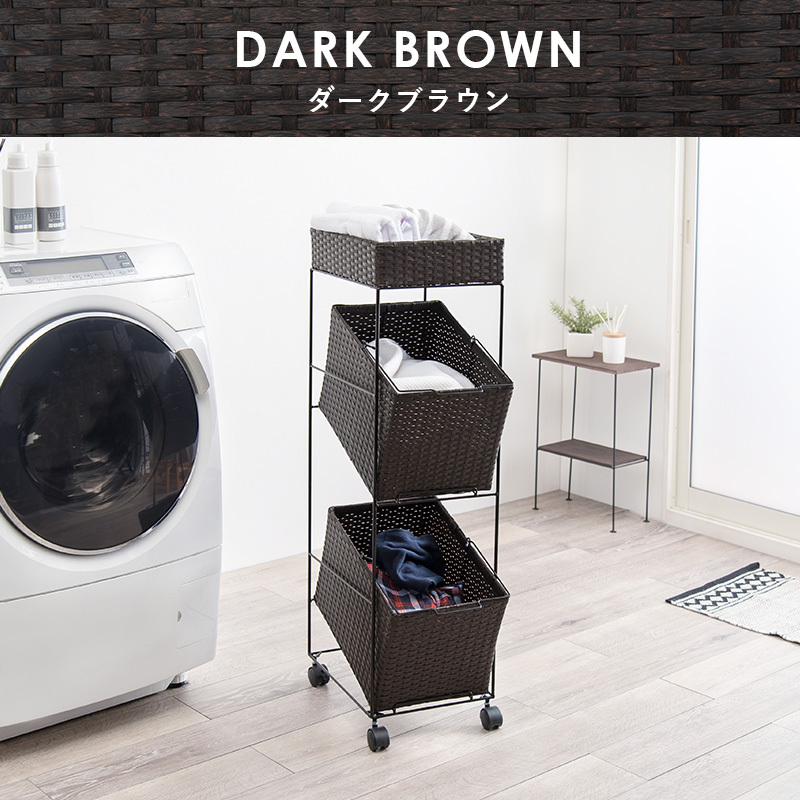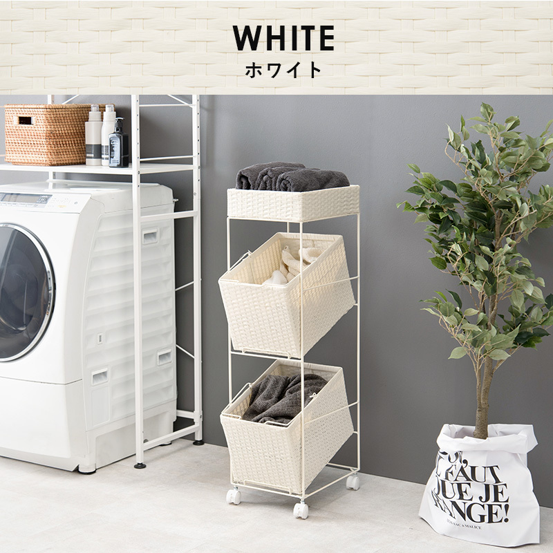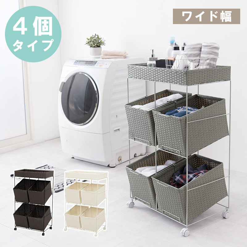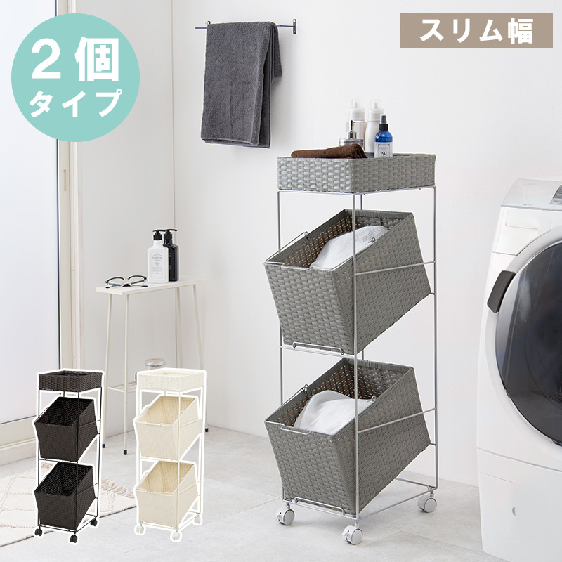 ランドリーラック 2杯 引き出し 幅28cmラタン調 完成品 収納