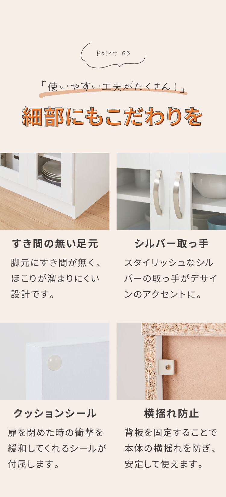 扉はアクリル板ですので、食器が当たっても安全で外からでも見やすい仕様です。