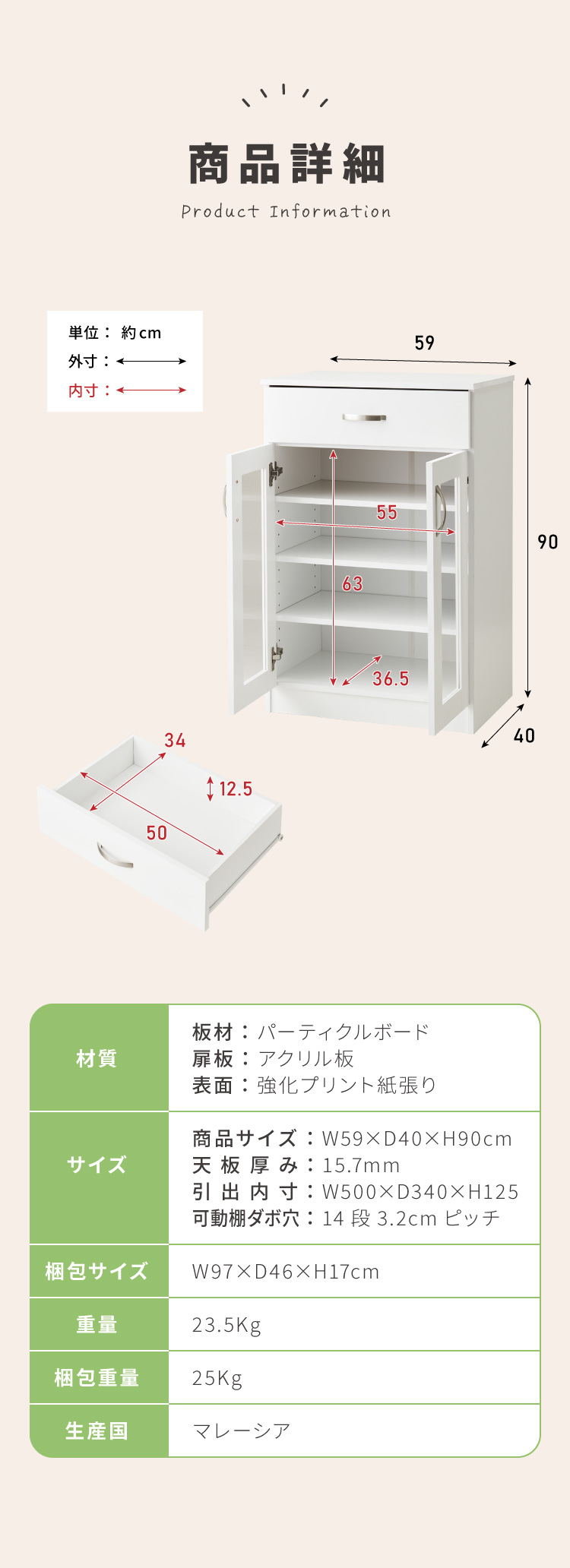 商品サイズ:W59×D40×H90cm