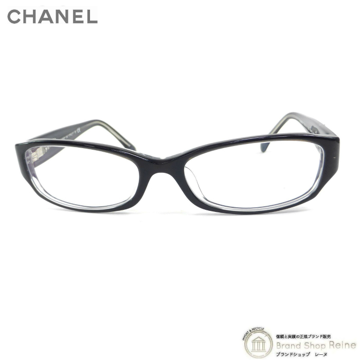 シャネル (CHANEL) カメリア ココマーク スクエア メガネフレーム 度入りレンズ 眼鏡 3198-H-A ブラック(中古)