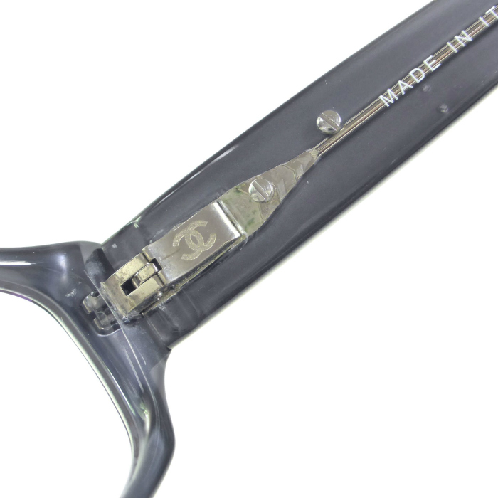 やや太めのテンプルにカメリアとココマークを施し、シンプルなデザインによくマッチしたシャネルらしい愛らしさが漂う度入り眼鏡です。