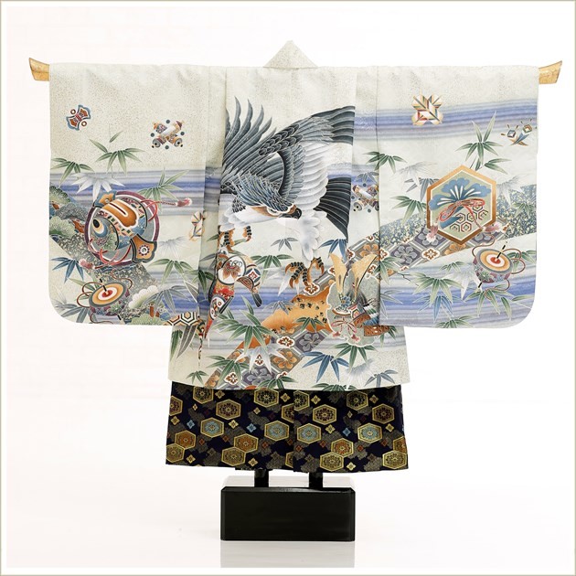 d4036 (「YAMATO」ブランド 淡グリーンに飛翔鷹/3歳〜5歳男児(小さめ5歳用)/七五三)