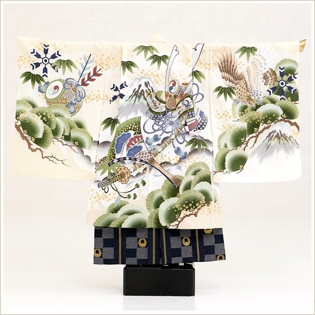 d5122(乙葉ブランド×クリームに縁起柄と鷹兜/5歳男児/七五三)