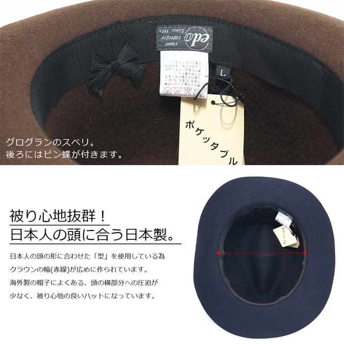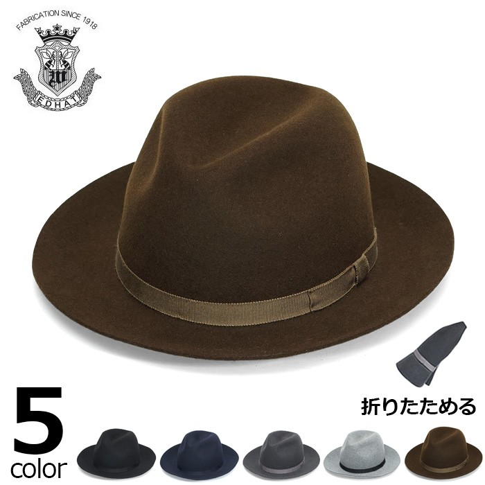 EDHAT エドハット 折りたたみ フェルトハット つば広ハット 中折れ ブランド ブラック 黒 ネイビー グレー ブラウン 無地 柔らかい ギフト 送料無料 16266343