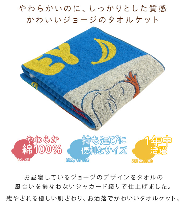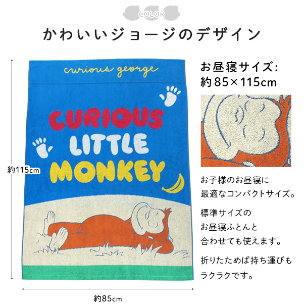 お昼寝ケット おさるのジョージ 85×115cm タオルケット 綿100% ブランケット おひるねケット 大判バスタオル キッズ 子供 保育園 かわいい ジョージ