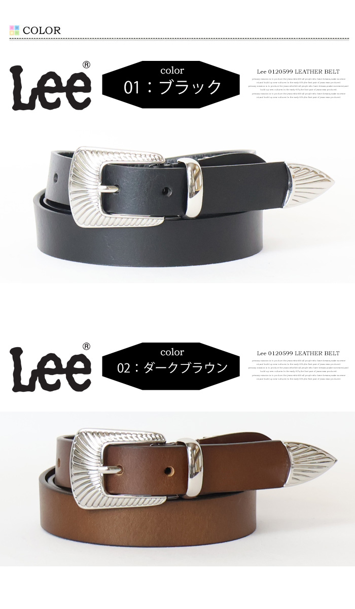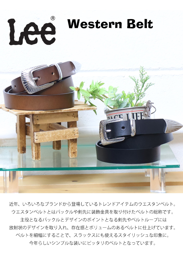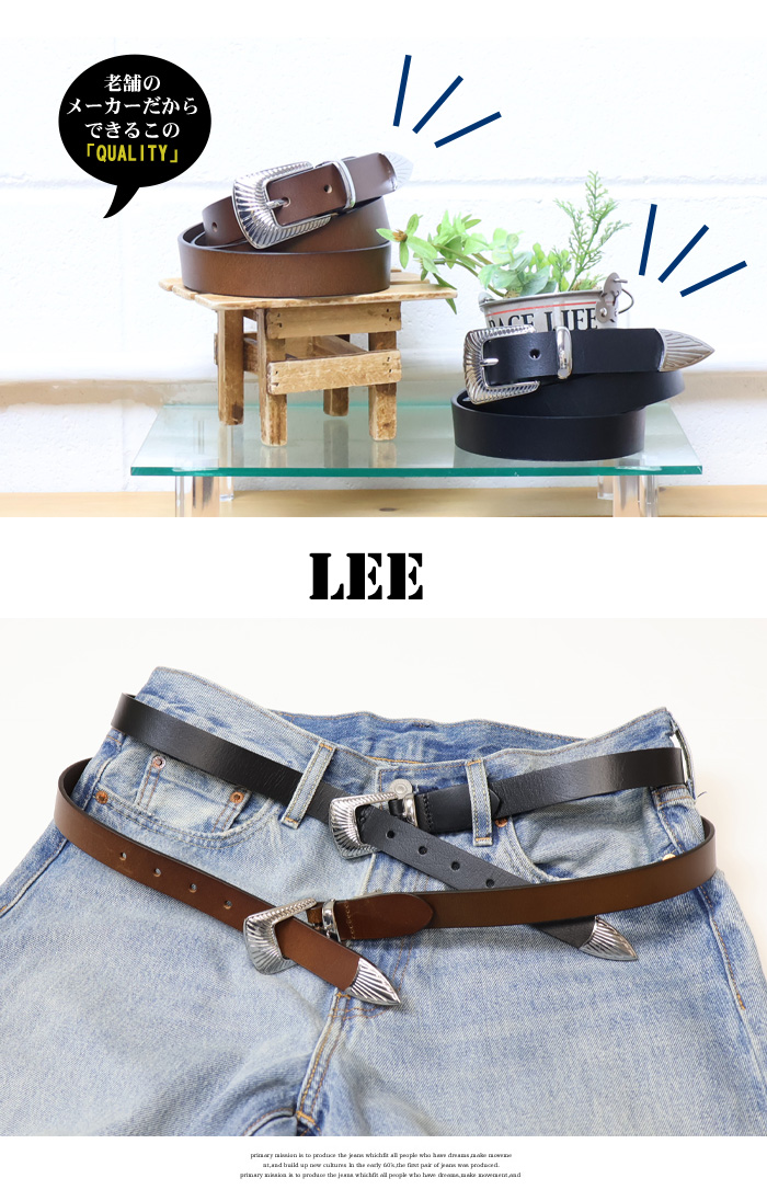Lee リー ウエスタンベルト レザーベルト 3点尾錠ベルト ウエスタンバックルベルト 細い メタルループ 牛革 本革 メンズ カット可 0120599