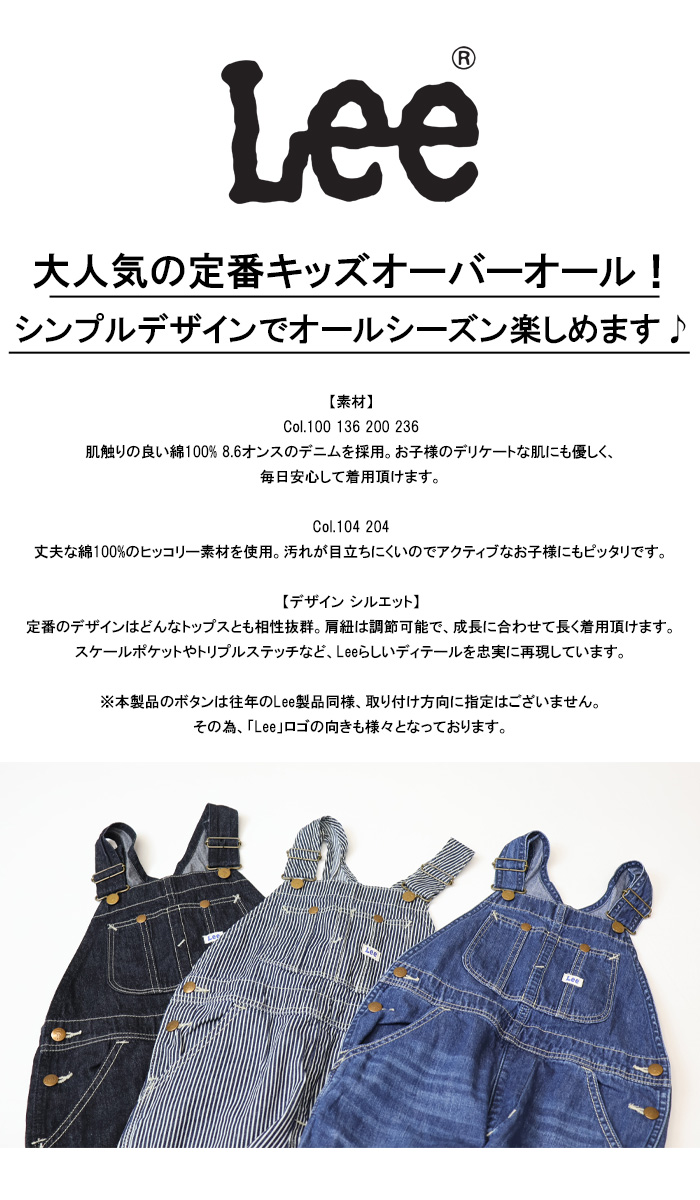 定番のデザインはどんなトップスとも相性抜群。肩紐は調節可能で、成長に合わせて長く着用頂けます。スケールポケットやトリプルステッチなど、Leeらしいディテールを忠実に再現しています。