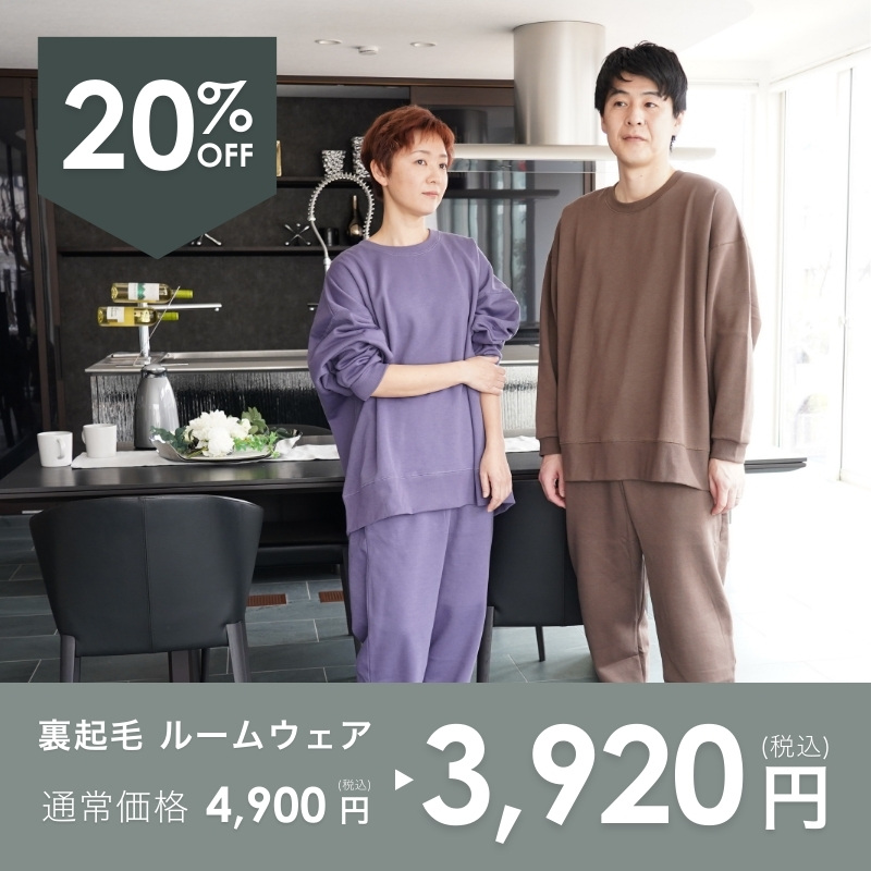 裏起毛であったか、ゆったりサイズなのに軽い着心地のルームウエア。