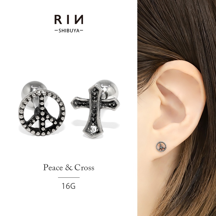 16Gストレートバーベルボディピアスピアスサージカルステンレス金属 アレルギー 対応片耳用耳ユニセックス男女兼用アクセサリーおすすめポイント消化凛 RINボディピアス専門店つけっぱなしセカンドピアスハートクロスストーンメンズスタイリッシュクール個性派シルバーブラック