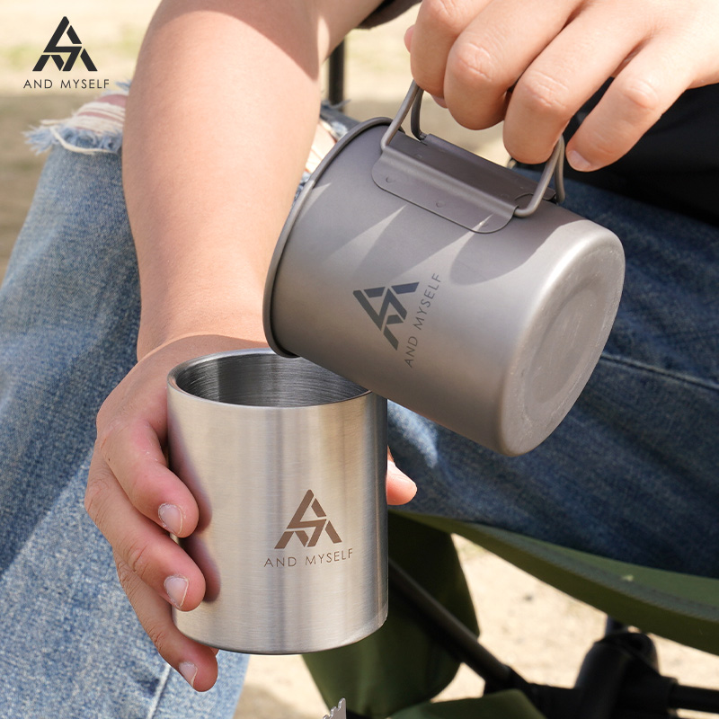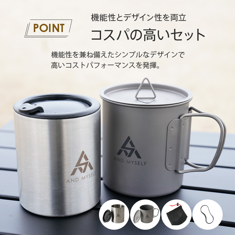 シェラカップ 2個セット チタン マグカップ チタンマグ 蓋付き キャンプ 料理道具 直火 保温 保冷 ステンレス 軽量 アウトドア アンドマイセルフ