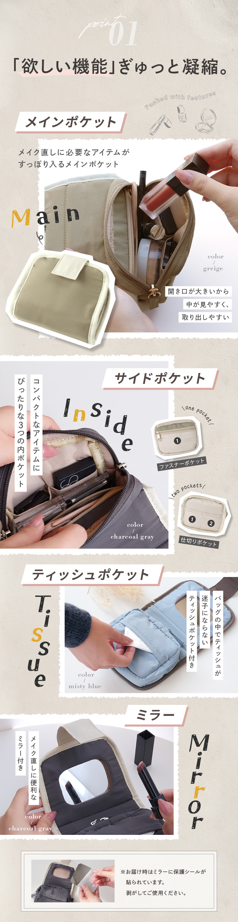 新商品 ティッシュポケット 多機能 使いやすい 鏡付き 仕切り 化粧直し レディースポーチ コンパクト 旅行 トラベル シンプル くすみカラー ポーチ 小物入れ 収納ポーチ コスメポーチ メイクポーチ コスメ 持ち運び オシャレ お洒落 かわいい 洗濯可能 可愛い 大人 大人女子 シンプル 化粧品 収納 仕切り付き ギフト プレゼント レディース クリスマス ホワイトデー 誕生日 母の日 アットライズ atrise
