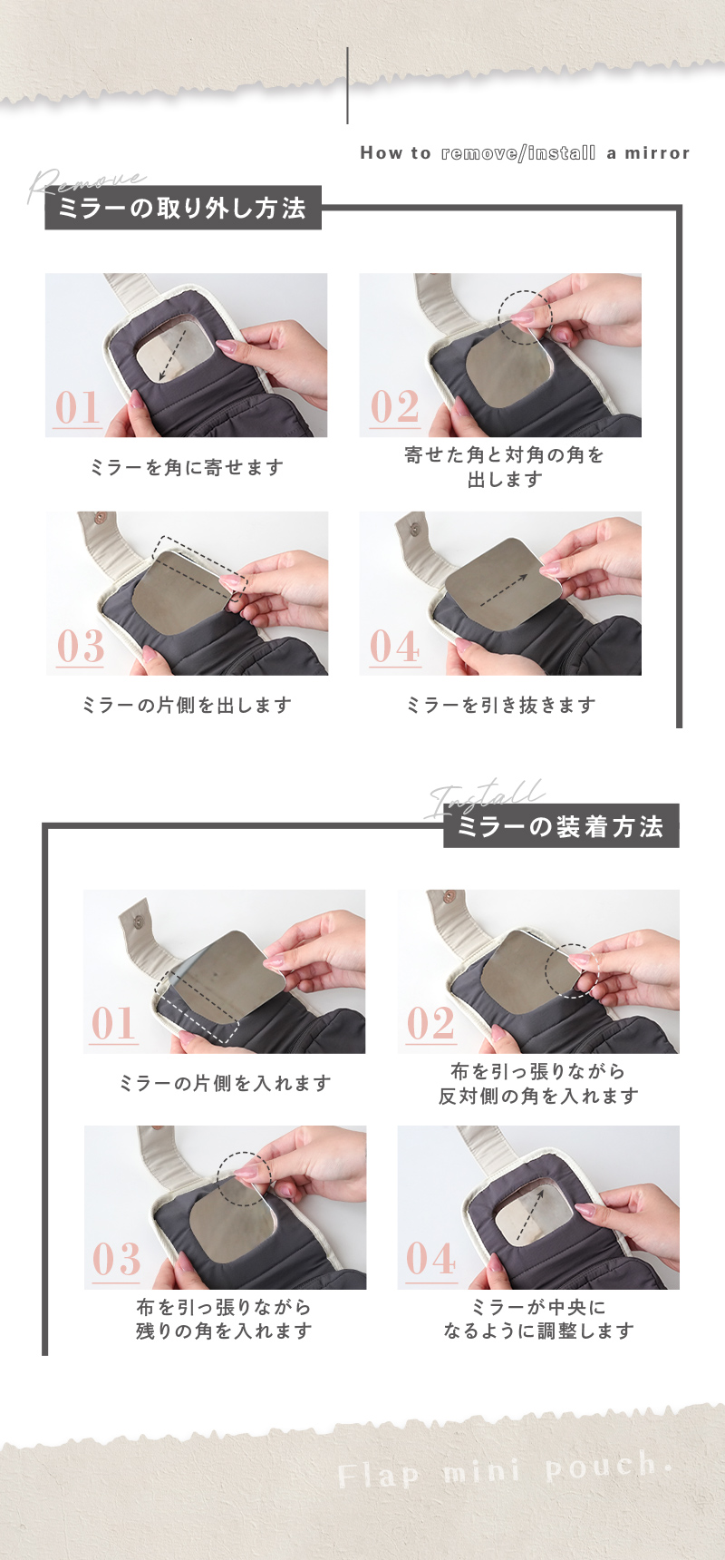 ミラー付き の便利な フラップミニポーチ ♪