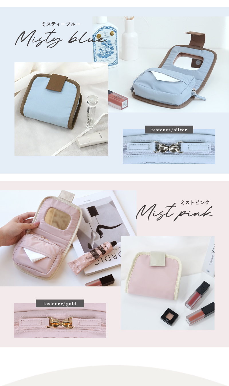 【爆買クーポン】化粧ポーチ ミラー付き ポケットティッシュ収納 大容量 メイク直し 撥水 軽量 自立 洗える トラベル ニュアンスカラー おしゃれ