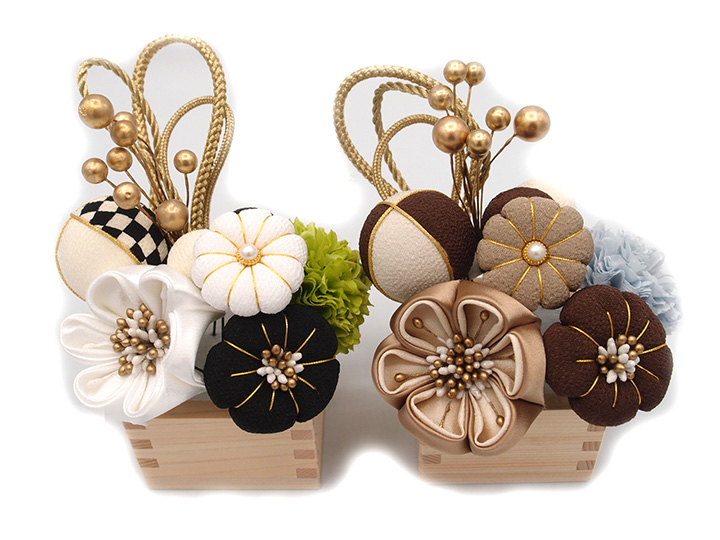 縁起の良い枡に入れられたこちらの髪飾りは