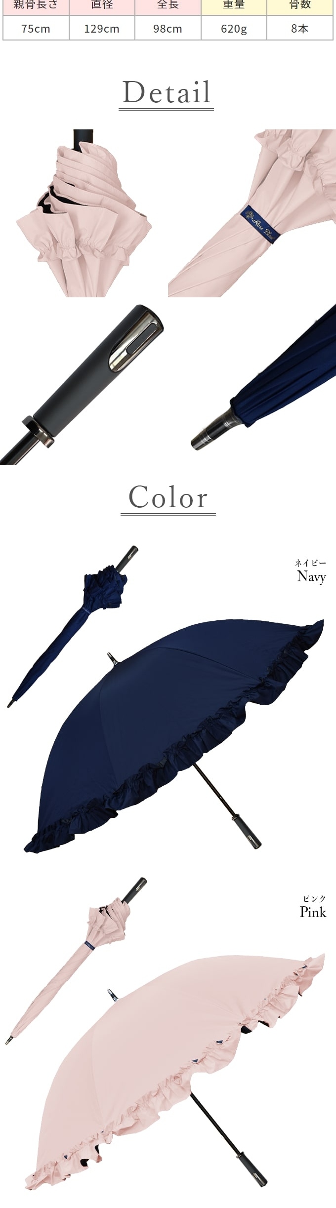 生地は高性能な為普通の傘生地より厚みがありますので、軽量な骨との重みの関係性にてやや閉め止まりにくいですが必ず紐で纏めていただけますようお願いします。