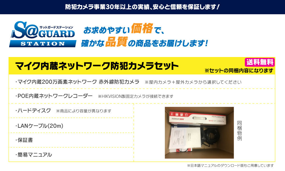 200万画素 マイク内蔵 ネットワーク 防犯カメラセット