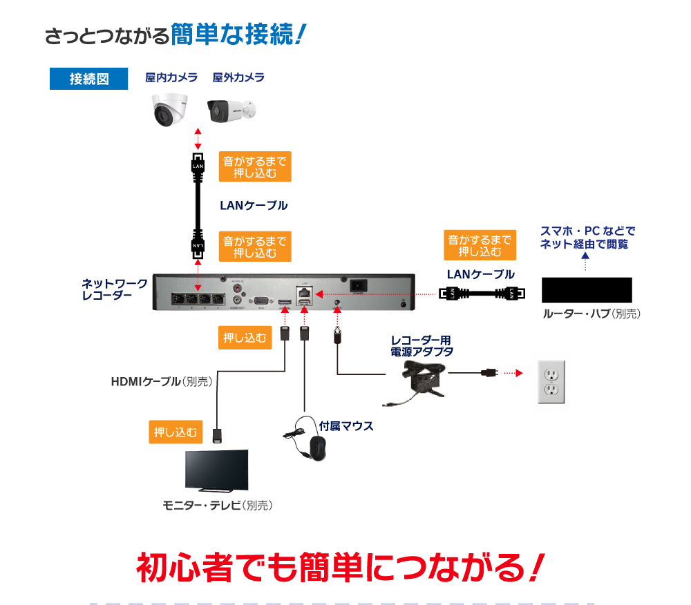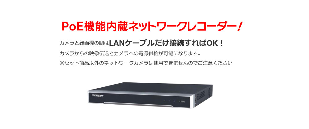 接続は LANケーブル だけ PoE機能内蔵16chレコーダー