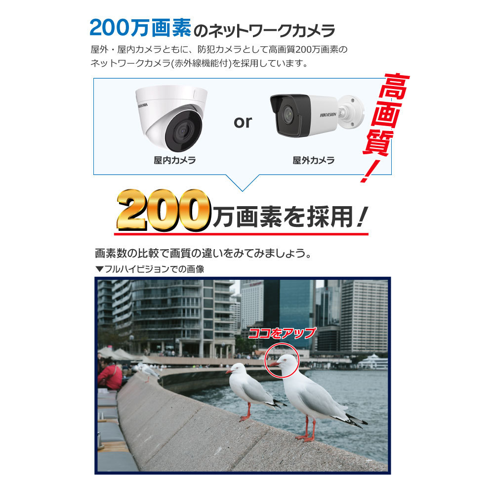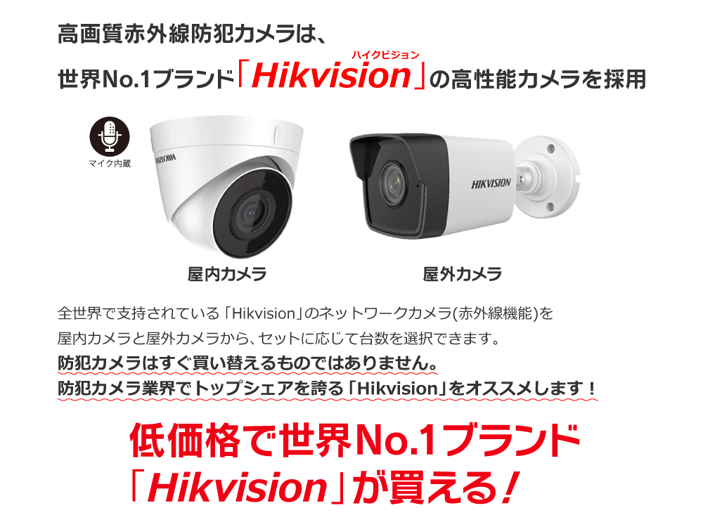 世界No.1ブランド HIKVISION ハイクビジョン の高性能な 200画質 ネットワークカメラ を採用
