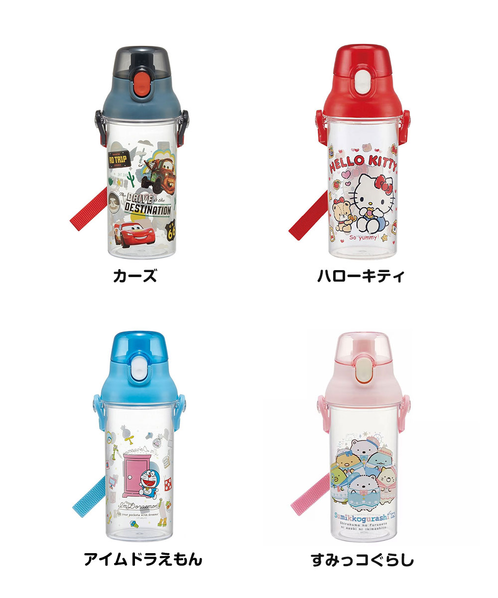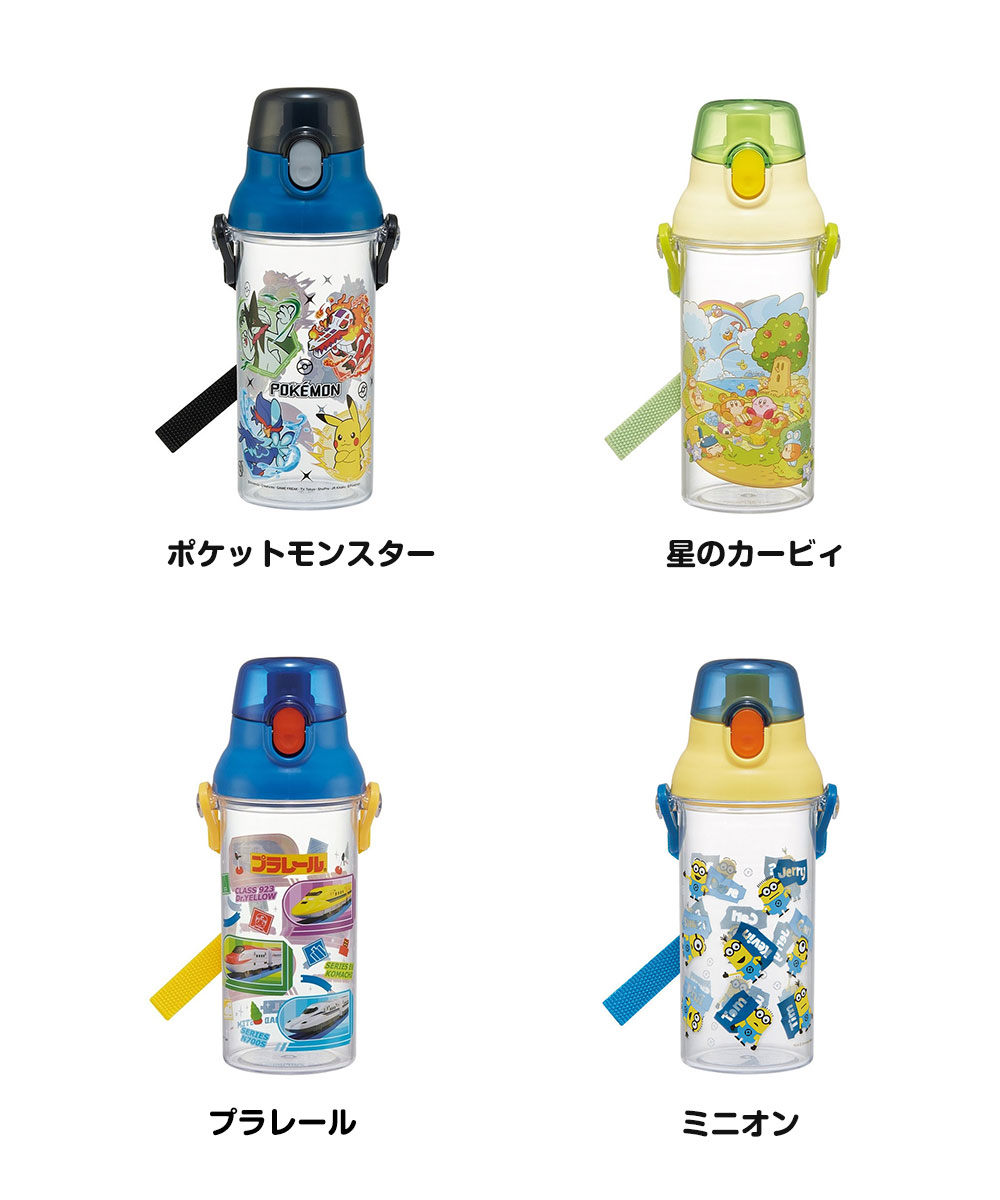 水筒 キッズ 480ml 直飲み クリア ワンタッチ 食洗機対応 ベルト付 名前シール 子供 男の子 女の子 キャラクター かわいい PSB5TR 爆買