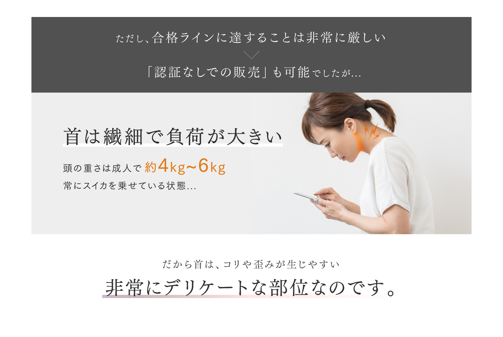 段階厚み設計で、頸椎の曲線に合わせ、隙間ができにくく、装着時のズレを低減。