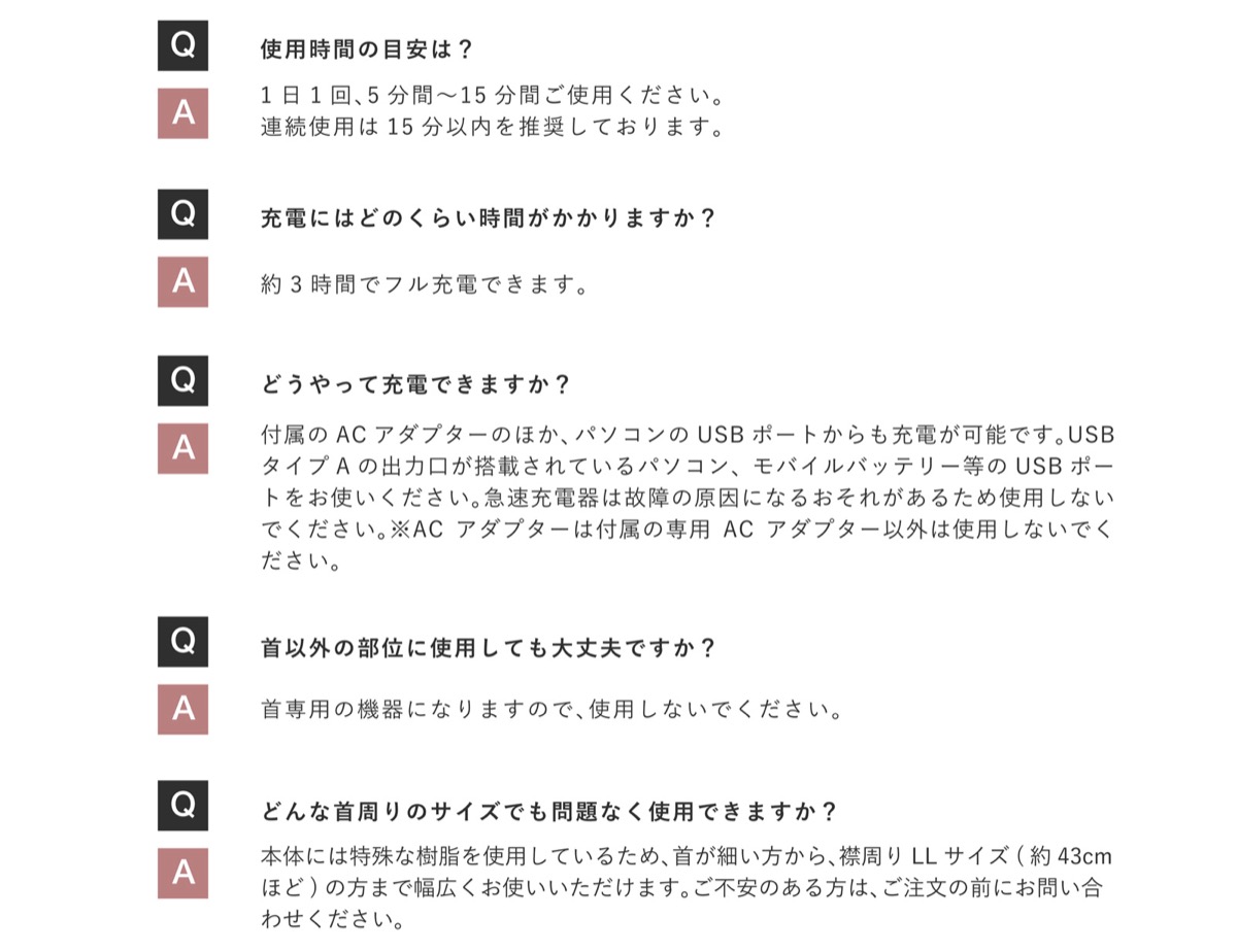 1回約15分、1日2回までを目安に、心地よいと感じる強さでご使用下さい。