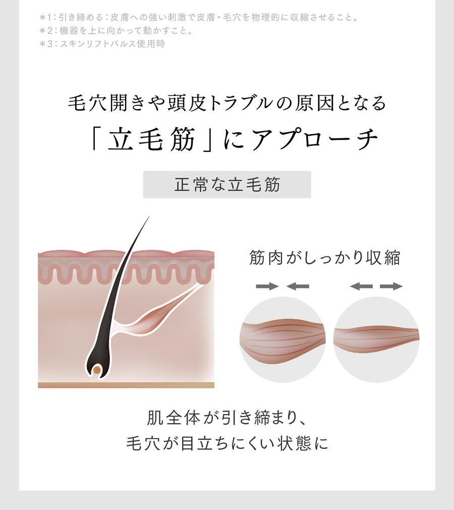頭皮やお肌などの『皮膚』と、表情筋などの『筋肉』の両方へアプロ―チすることで、実感できるリフトケア※体験へ導きます。