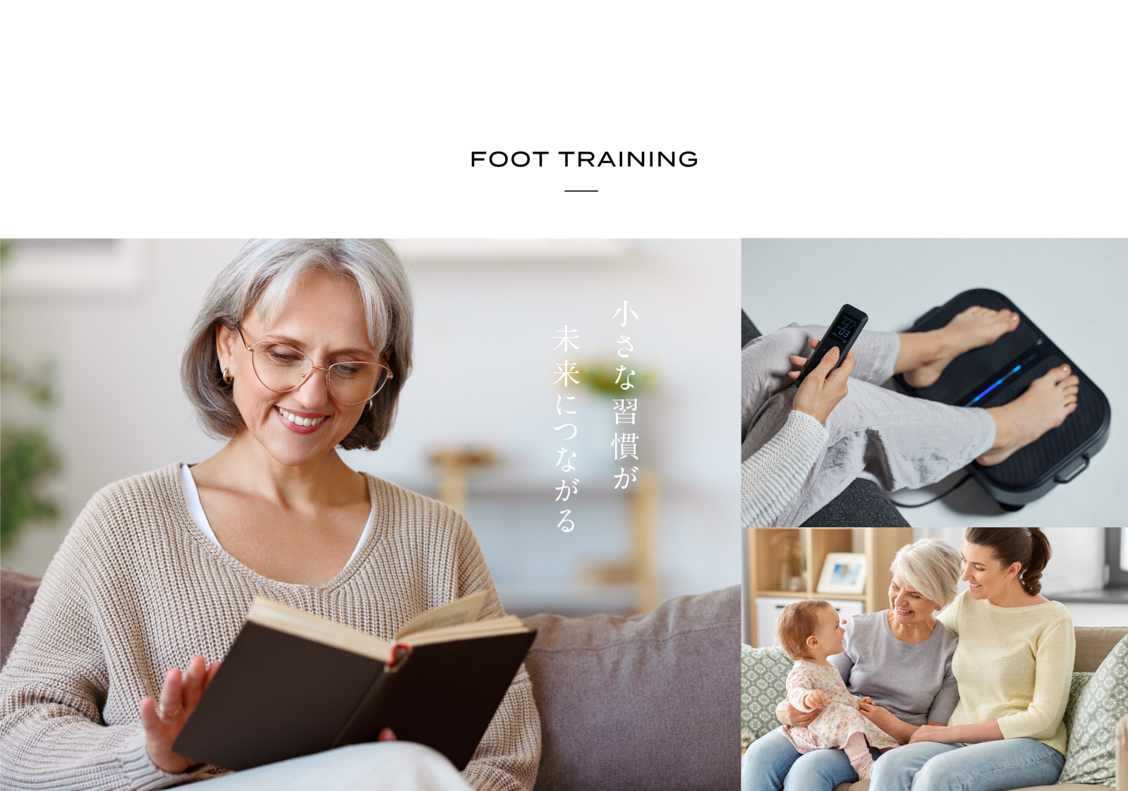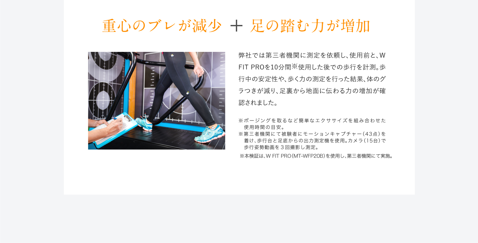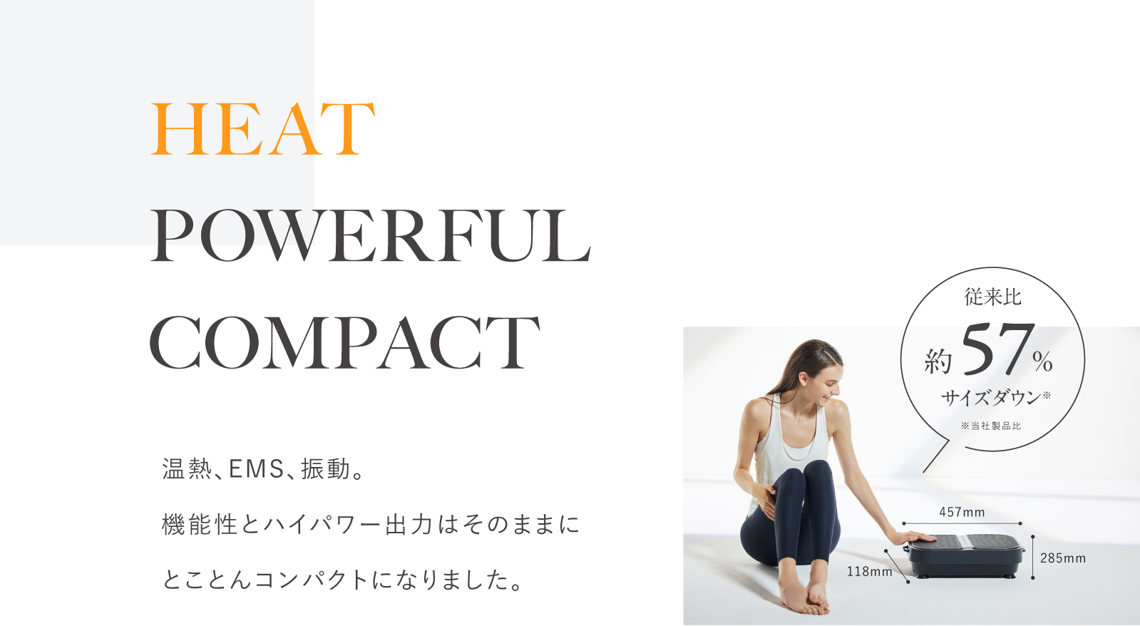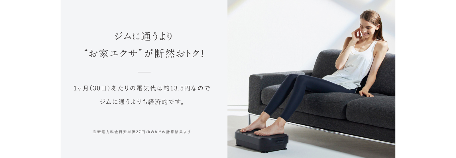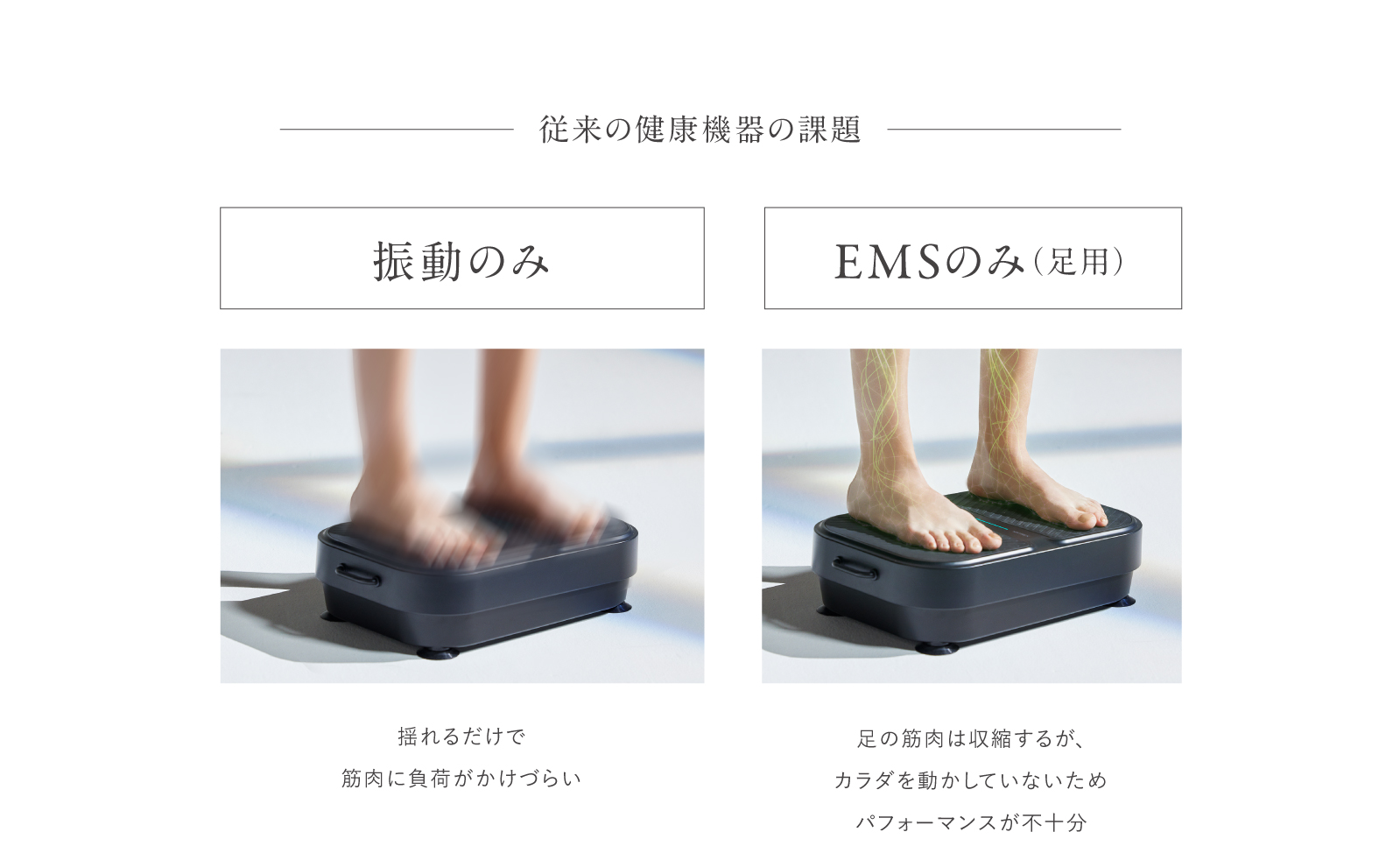 足を乗せるだけで振動とEMSのダブルのチカラが、歩くときに使う筋肉を効率的に刺激します。