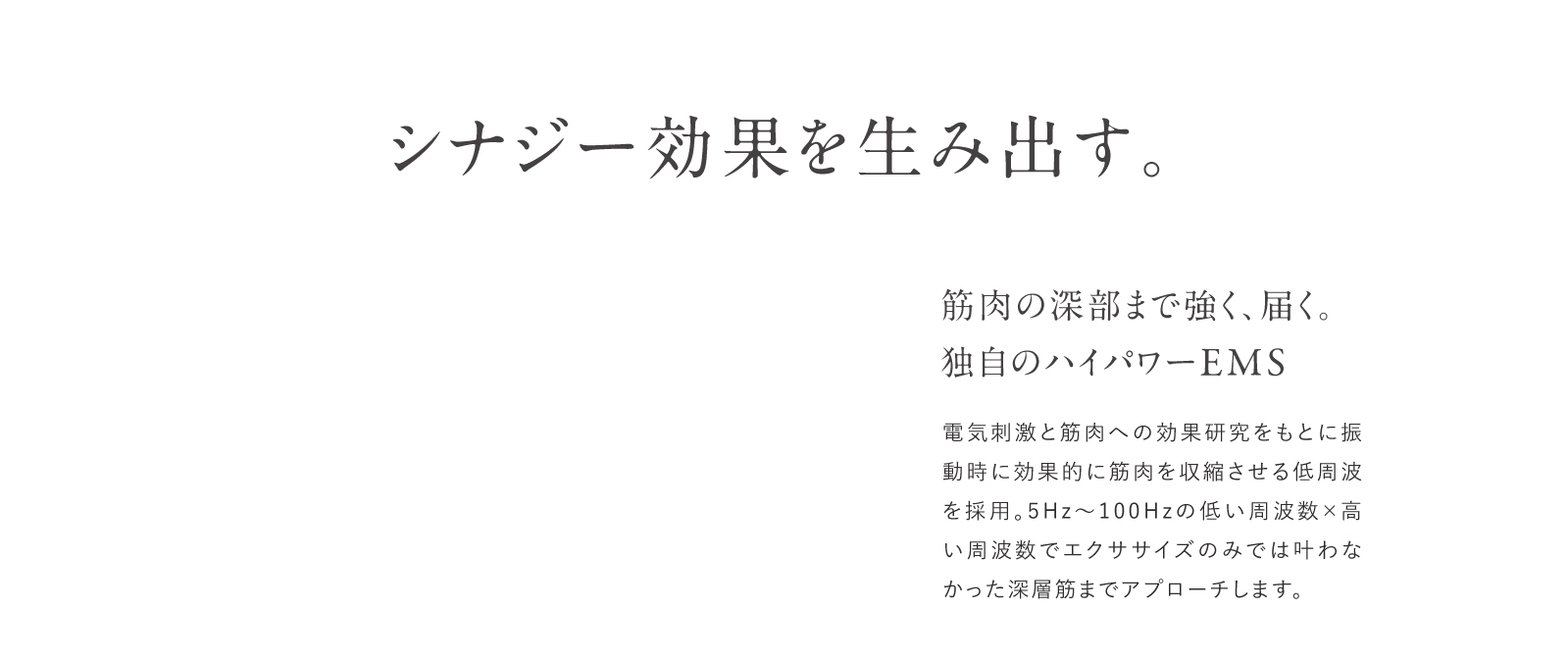 5Hz〜100Hzの低い周波数×高い周波数でエクササイズのみでは叶わなかった深層筋までアプローチします。