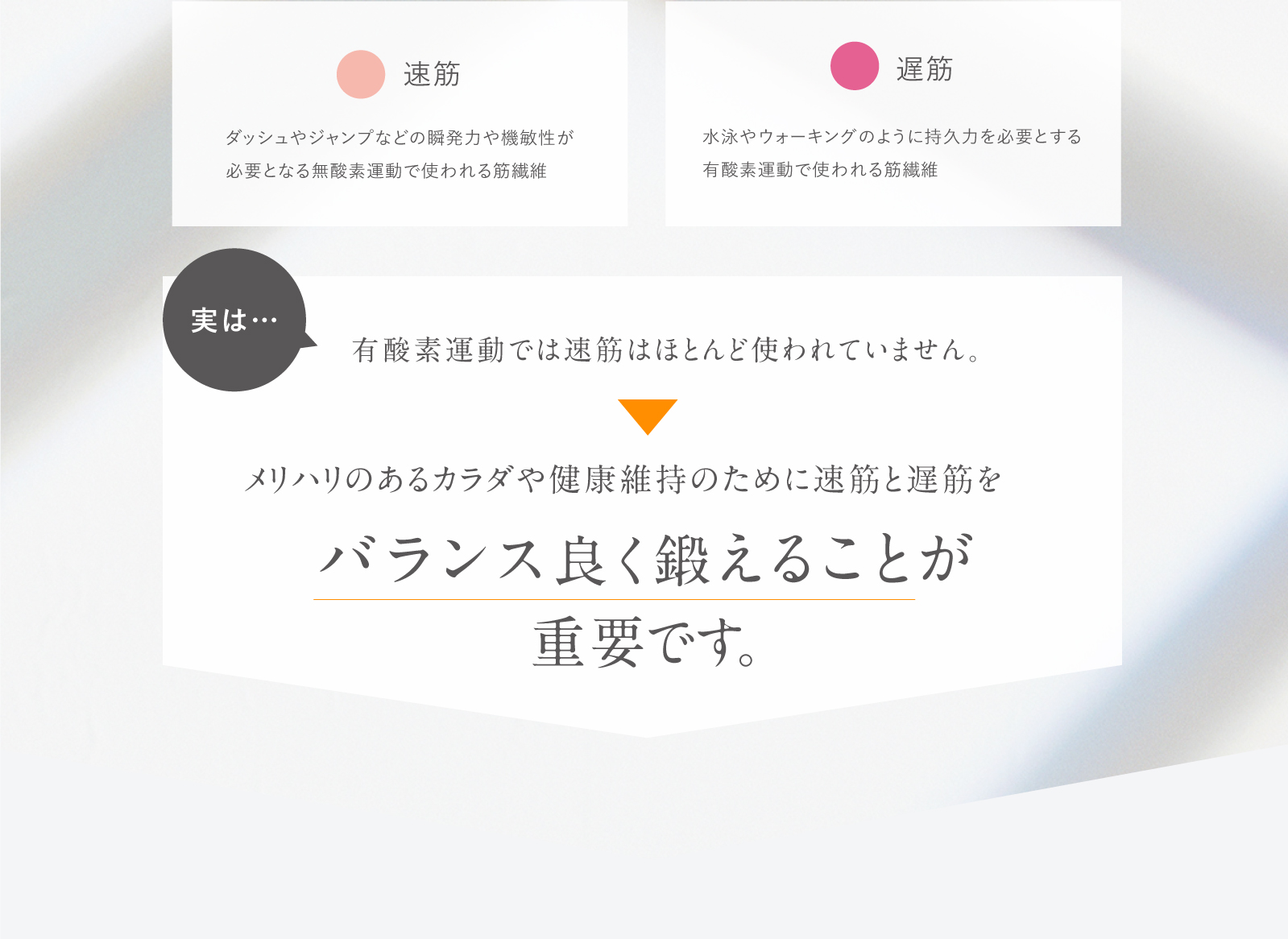 EMSで負荷をかけることにより「速筋」と「遅筋」に同時にアプローチ。