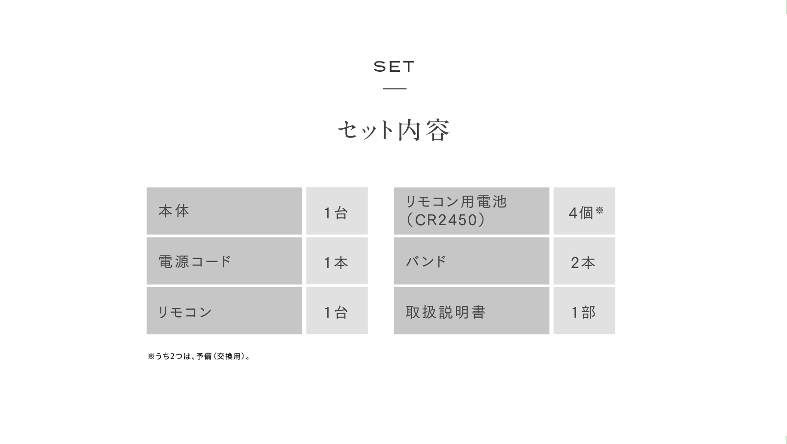 ・リモコン用電池(CR2450) ×4(予備2個)