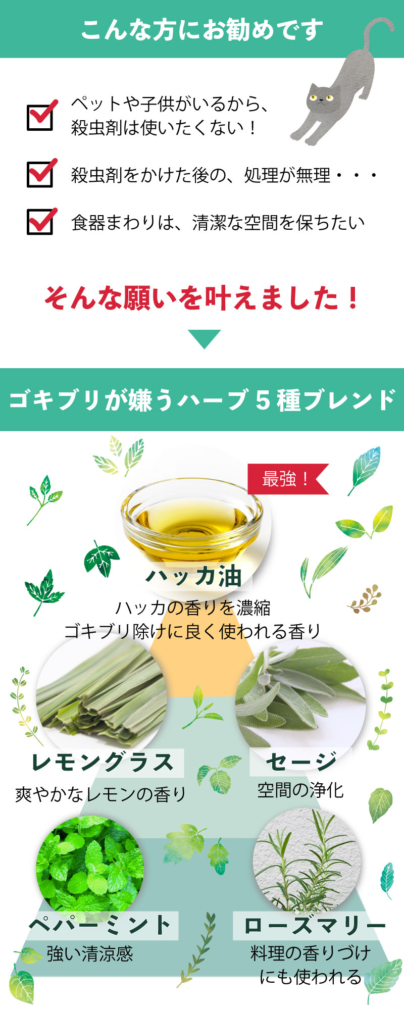 ゴキブリ除けハーブ(20回分) ゴキブリ よけ ハーブ ゴキブリ対策 いなくなる レモングラス ローズマリー セージ ペパーミント ハッカ油
