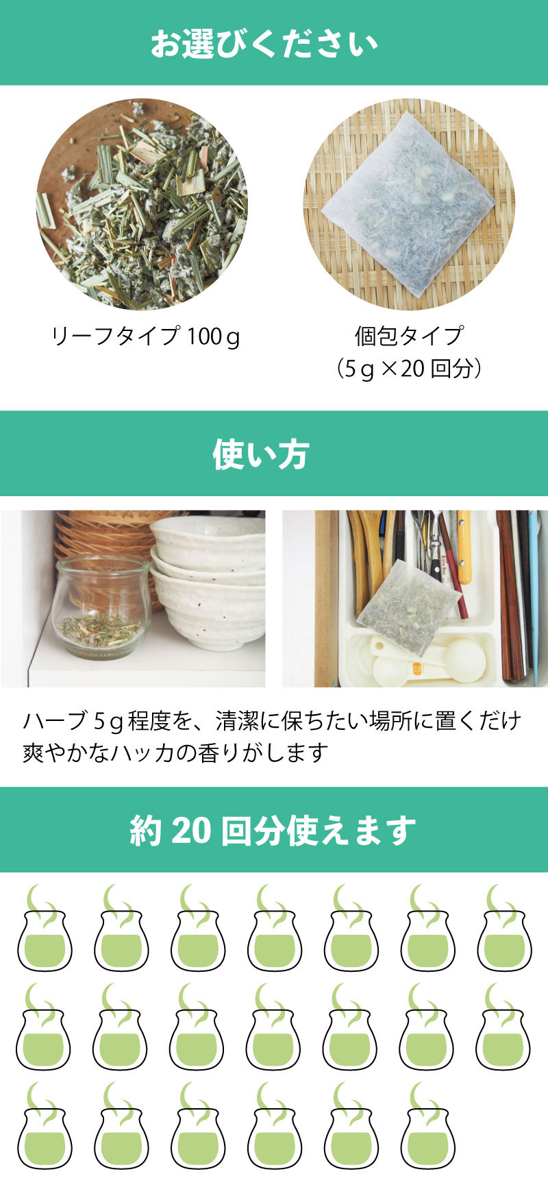 ・袋から出した後のハーブの使用期限は約1ヶ月です、袋に入った新しいハーブと交換してください。
