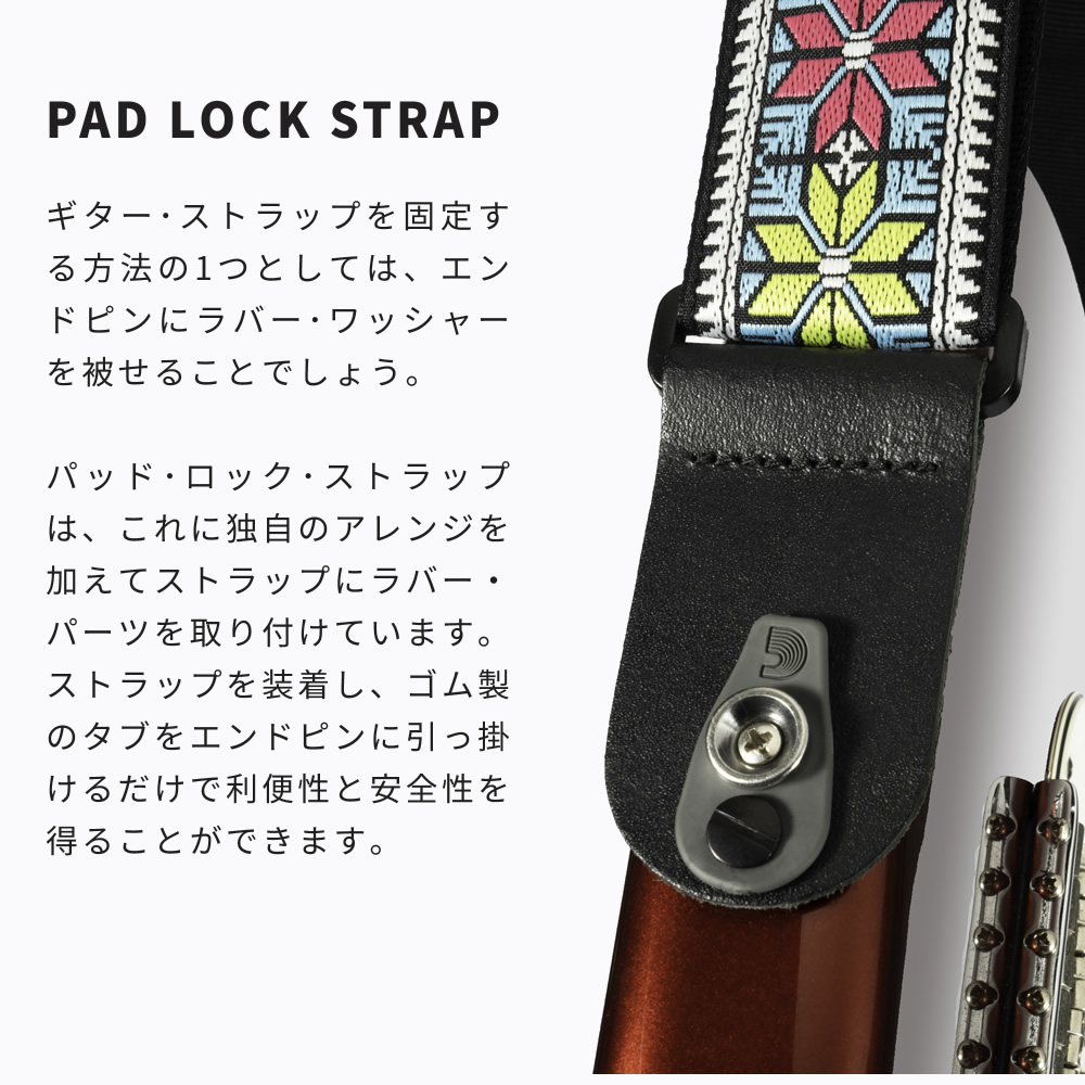 D'Addario ギター・ベースストラップ PAD LOCK GUITAR STRAPS〔ダダリオ パッドロックストラップ 50TB01-RL/50TC00/50TC01〕〔ゆうパケット対応〕*