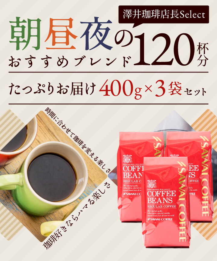 朝昼夜で楽しむ!澤井珈琲の120杯分ブレンドセット 1.2kg