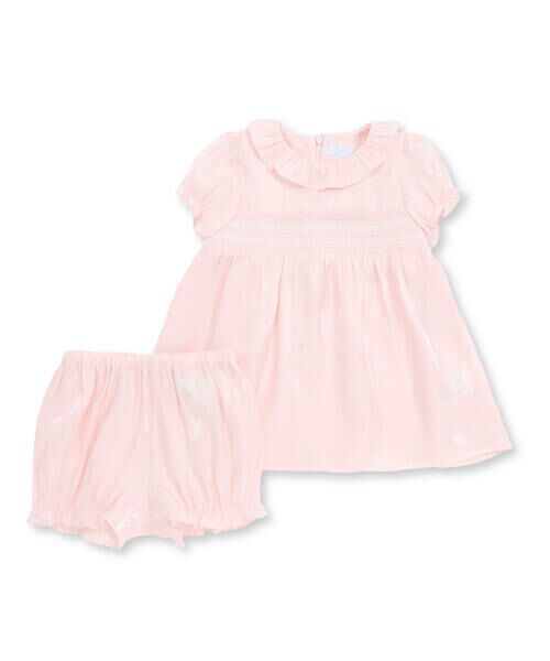 襟もとのフリルと淡いカラーが可愛らしくベビーらしい1着です。