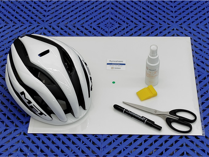 ということで、新しいヘルメットがキズだらけになってしまう前に当店自慢のプロテクションフィルム『Syncshield(シンクシールド)』を施工してキズ対策をすることにしました。