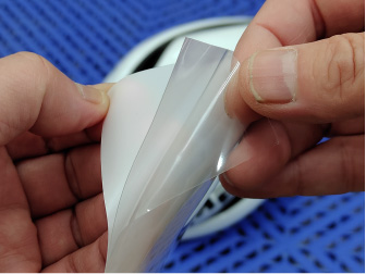 施工エリアを覆うのに十分なサイズをざっくりと切り出したら、一番上の保護フィルムだけを剥がします。