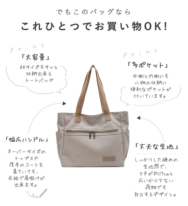 [大容量]A4サイズもサッと収納出来るトートバッグ