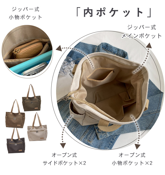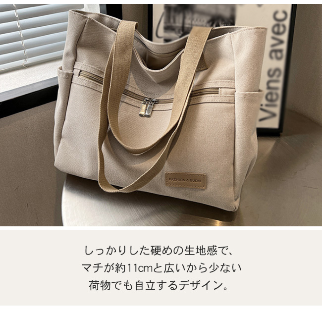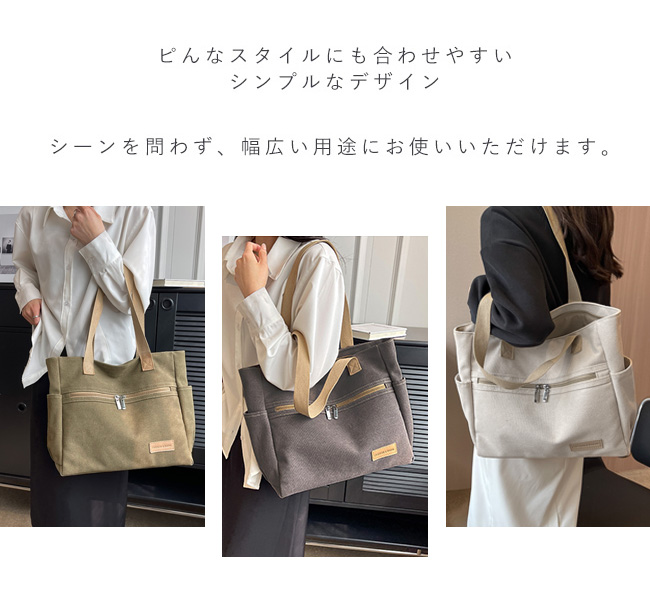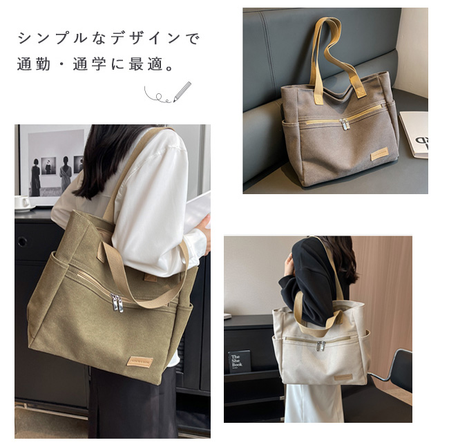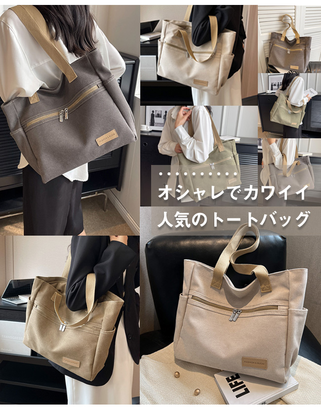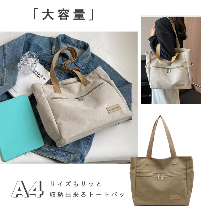 【新品10%OFF】キャンバストートバッグ レディース 肩掛けバッグ かばん カバン ジッパー式 手提げかばん 自立 A4 大容量 無地 通勤 通学 オフィス 爆買