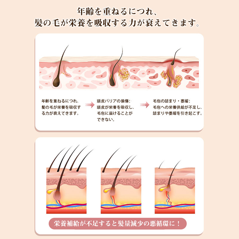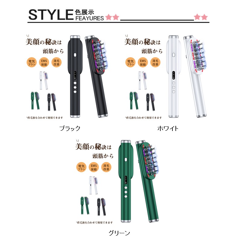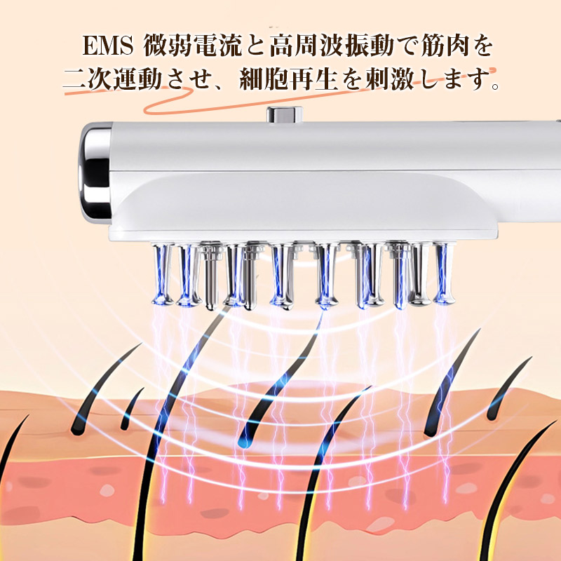 EMS微電流、振動、光線の3重作用が相まって、薄毛の根本的な改善をサポートします。毎日5分の習慣で、毛髪の密度を高め、艶やかで丈夫な髪に導きます。