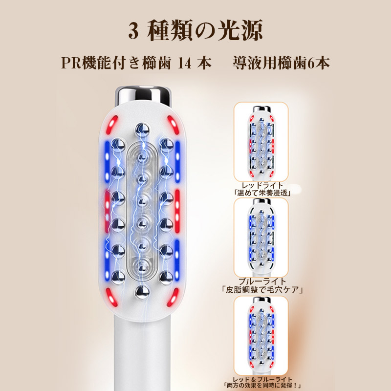 ● 青色光:?皮の殺菌・消炎作用を発揮し、フケやかゆみの原因を抑制し、清潔な?皮環境を維持します。