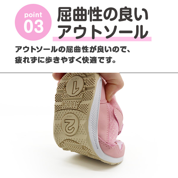 アウトソールの屈曲性が良いので、疲れずに歩きやすく快適です。