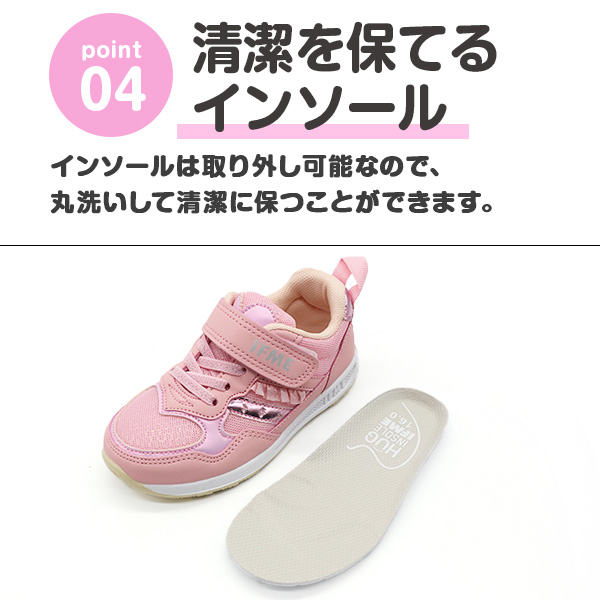 イフミー スニーカー キッズ 子供 靴 子供靴 ジュニア 女の子 軽量 軽い 3E 幅広 マジックテープ ハート ピンク パープル 幼稚園 保育園 通園 IFME 30-4315