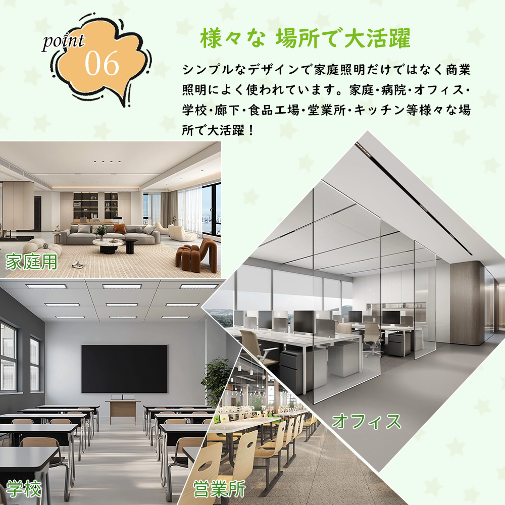 ※公共施設や家庭照明、ガレージ、病院、学校、本屋、居住空間に’適応。