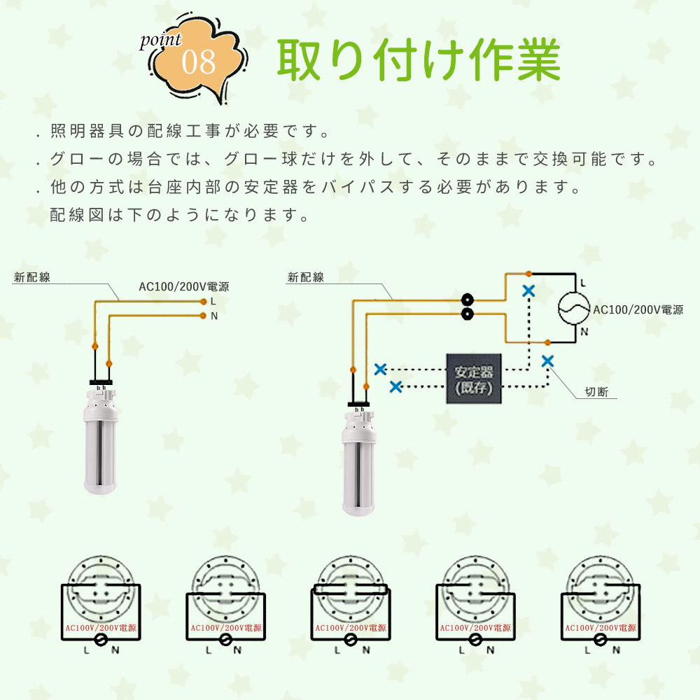 グローランプの付いていないインバーター(電子安定器)方式の場合は、直結工事が必要です。